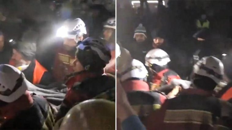 Με τα μάτια του ορθάνοικτα ο Γιαγκίζ Ουλάς τυλίχθηκε σε μια κουβέρτα και μεταφέρθηκε σε νοσοκομείο εκστρατείας. Οι διασώστες ανέσυραν ζωντανή και τη μητέρα του, σύμφωνα με τα βίντεο που μεταδόθηκαν.