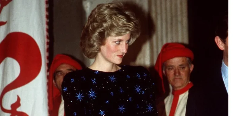 - Η Νταϊάνα είχε φορέσει πρώτα το βραδινό φόρεμα, σε μαύρο μπλε χρώμα, του σχεδιαστή Ζακ Αζαγκούρι, στη Φλωρεντία το 1985.