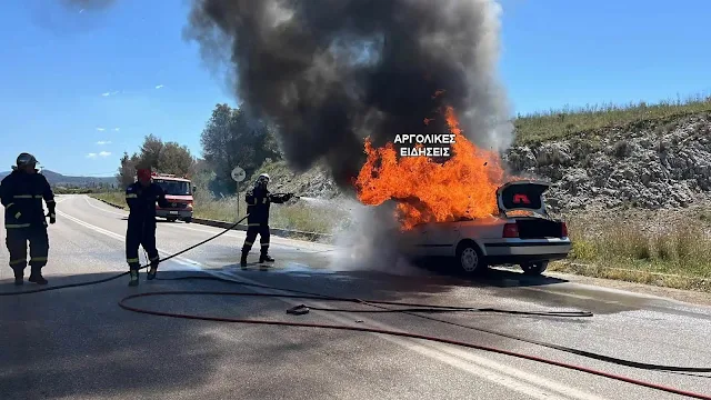 Στις φλόγες τυλίχθηκε επιβατικό Ι.Χ. αυτοκίνητο τις μεσημεριανές ώρες της Κυριακής 2 Νοεμβρίου στο 124χλμ. της Ν.Ε.Ο. Κορίνθου – Τριπόλεως.