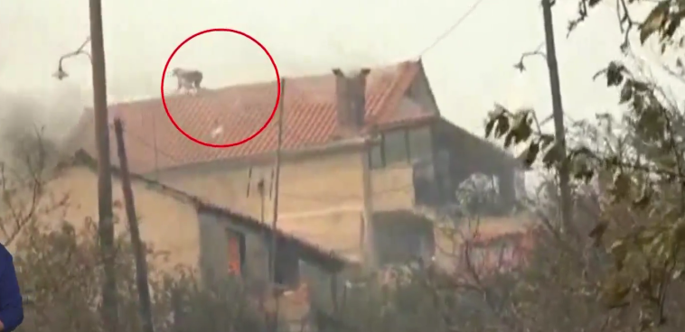 Στο mega μίλησε ο Γιάννης, κάτοικος της περιοχής, τον οποίο τον είδαμε να σκαρφαλώνει στη στέγη της κατοικίας του προκειμένου να το σώσει από την πύρινη λαίλαπα.