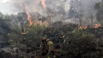 Για την κατάσβεση της πυρκαγιάς στη Λακωνία κινητοποιήθηκαν 65 πυροσβέστες με 3 ομάδες πεζοπόρων της 9ης ΕΜΟΔΕ και 19 οχήματα.