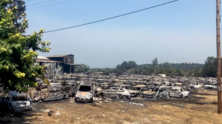 Η φωτιά που σάρωσε την Αχαΐα δεν άφησε στο έλεός της ούτε τα οχήματα που βρίσκονταν στις εγκαταστάσεις του Τελωνείου Πατρών της Ανεξάρτητης Αρχής Δημοσίων Εσόδων (ΑΑΔΕ).