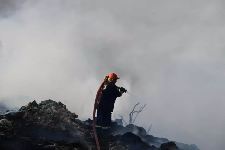 Μάχη με τις φλόγες δίνουν πυροσβέστες, κάτοικοι και εθελοντές για να περιορίσουν το μεγάλο μέτωπο της φωτιάς που έχει ξεσπάσει στον δήμο Κύμης – Αλιβερίου στην Εύβοια.
