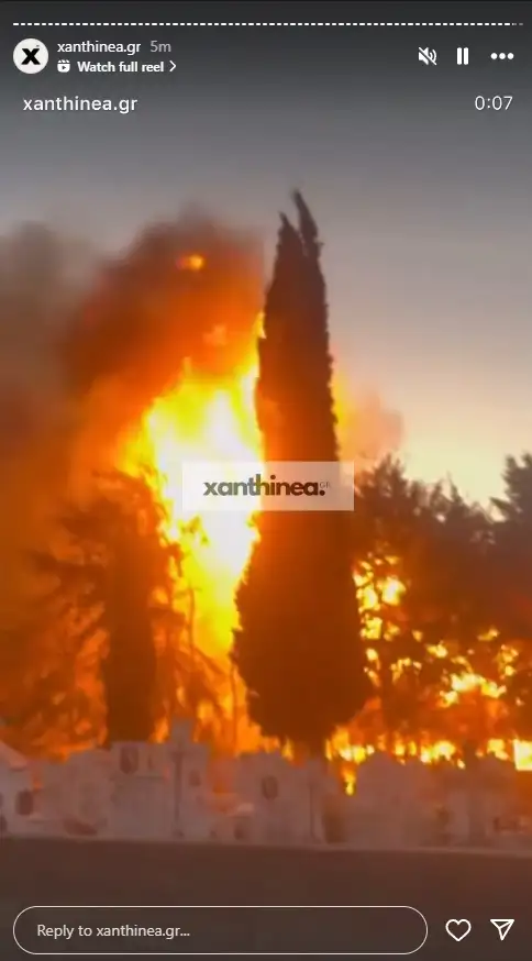 Σύμφωνα με το xanthinea, οι φλόγες ξεπήδησαν αμέσως, λόγω των έντονων ανέμων που έπνεαν στην περιοχή.