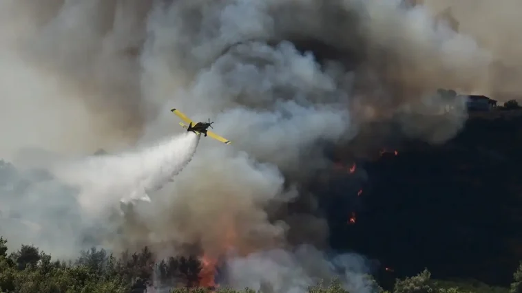 Από αέρος παλεύουν με τις φλόγες και 3 αεροσκάφη, ενώ στο έργο της πυρόσβεσης συνδράμουν υδροφόρες και μηχανήματα έργου ΟΤΑ.