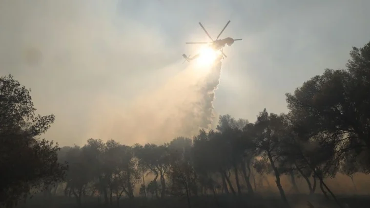 Στο σημείο έσπευσαν δυνάμεις της Πυροσβεστικής. Κινητοποιήθηκαν 32 πυροσβέστες με 2 ομάδες πεζοπόρου της 7ης ΕΜΟΔΕ, 9 οχήματα και 4 ελικόπτερα.