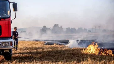 Η φωτιά ξέσπασε σε χαμηλή βλάστηση στην Πλάκα Λιτόχωρου Πιερίας και εξαπλώθηκε γρήγορα λόγω των ισχυρών ανέμων.
