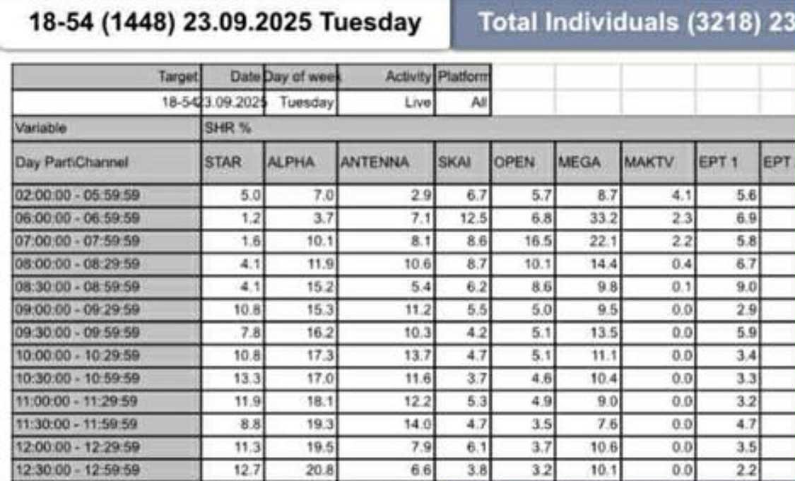 Δείτε αναλυτικά τις τηλεθεάσεις παρακάτω: