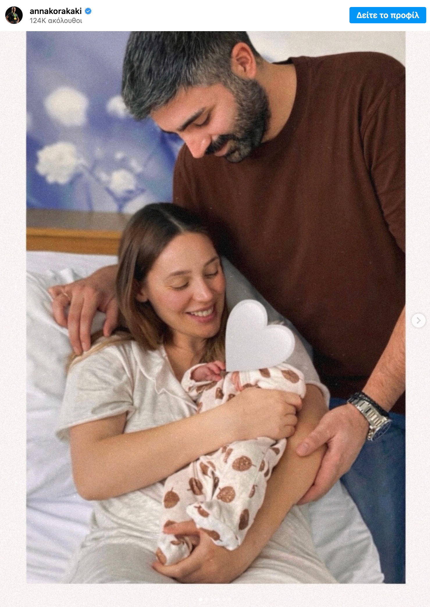 «31/1/26 Γεννήθηκε η αγάπη αυτή, που ξεπερνάει τις λέξεις – όλες τις λέξεις. Και είμαστε έτοιμοι να ξεπεράσει και ν’ ανατρέψει και τα πάντα, στο πάντα μας… Ό,τι νομίζαμε πως ξέραμε, νιώθαμε, υπολογίζαμε, πράτταμε. Η κόρη μας. Απέραντη ευγνωμοσύνη κι ένα τεράστιο ευχαριστώ στην αγαπημένη μου γυναικολόγο και μαιευτήρα Στέλλα Χουσμεκιάρη, καθώς και στη μαία μου, Σερβία Ελένη, για μια υπέροχη εμπειρία φυσιολογικού τοκετού που θα μείνει ανεξίτηλη ως την πιο γλυκιά ανάμνηση και ό,τι ωραιότερο και σπουδαιότερο έχω καταφέρει… Πέρα από τη μεγάλη αγωνία που δε σ’ εγκαταλείπει μέχρι εκείνη την πρώτη αγκαλιά – καθ’ όλη την αναμονή και την προσμονή για τον ερχομό της – υποδεχτήκαμε τη μικρή μας σε ένα κλίμα γεμάτο αγάπη, τρυφερότητα, ηρεμία, χιούμορ, γέλια και μιας ξεχωριστής μορφής γαλήνη· έτσι ακριβώς όπως ευχόμαστε να ’ναι κι η ζωή της”.