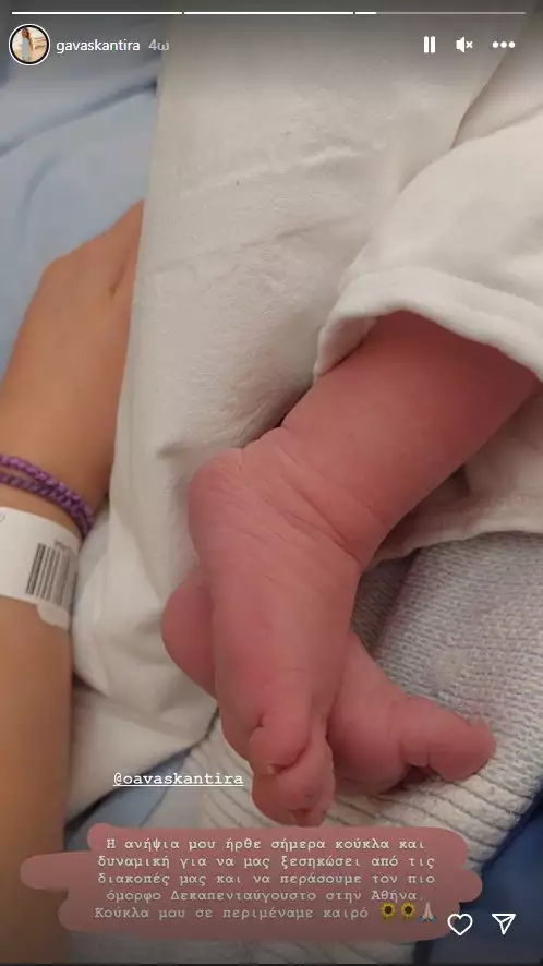 «Η ανιψιά μου ήρθε σήμερα κούκλα και δυναμική για να μας ξεσηκώσει από τις διακοπές μας και να περάσουμε τον πιο όμορφο Δεκαπενταύγουστο στην Αθήνα. Κούκλα μου σε περιμέναμε καιρό», έγραψε η Γεωργία Αβασκαντήρα κάτω από τη φωτογραφία με τα ποδαράκια της ανιψιάς της.