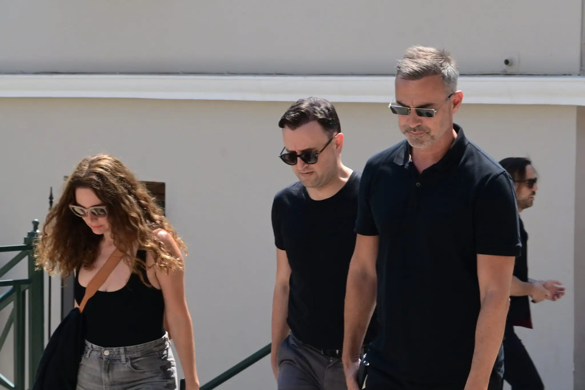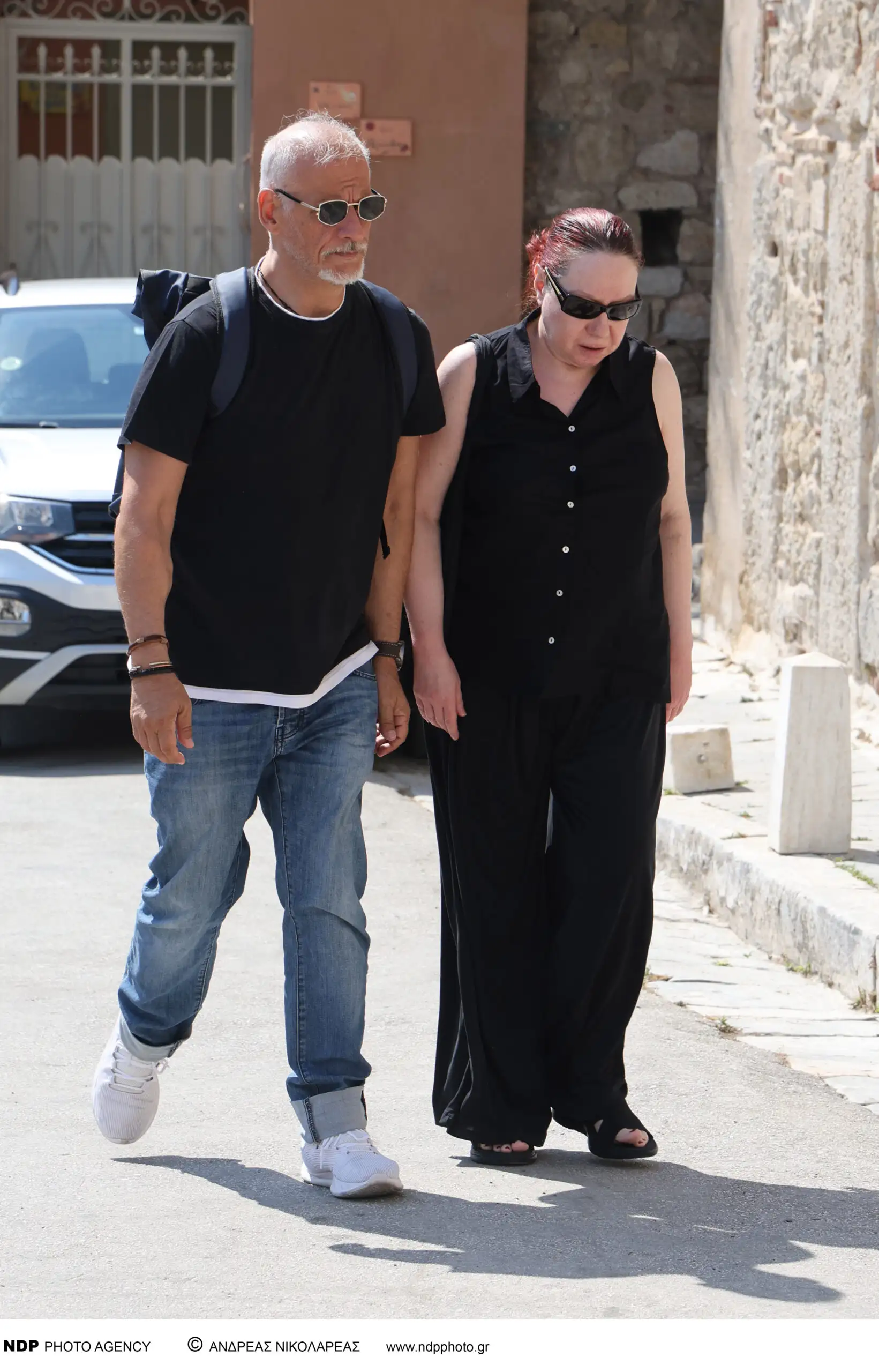 Ο δημιουργός του «Παρά Πέντε» Γιώργος Καπουτζίδης έφτασε στην εκκλησία με την Αγγελική Λάμπρη και τον Αργύρη Αγγέλου. Όλοι τους συντετριμμένοι, πέρασαν στα ενδότερα χωρίς να πουν το παραμικρό.