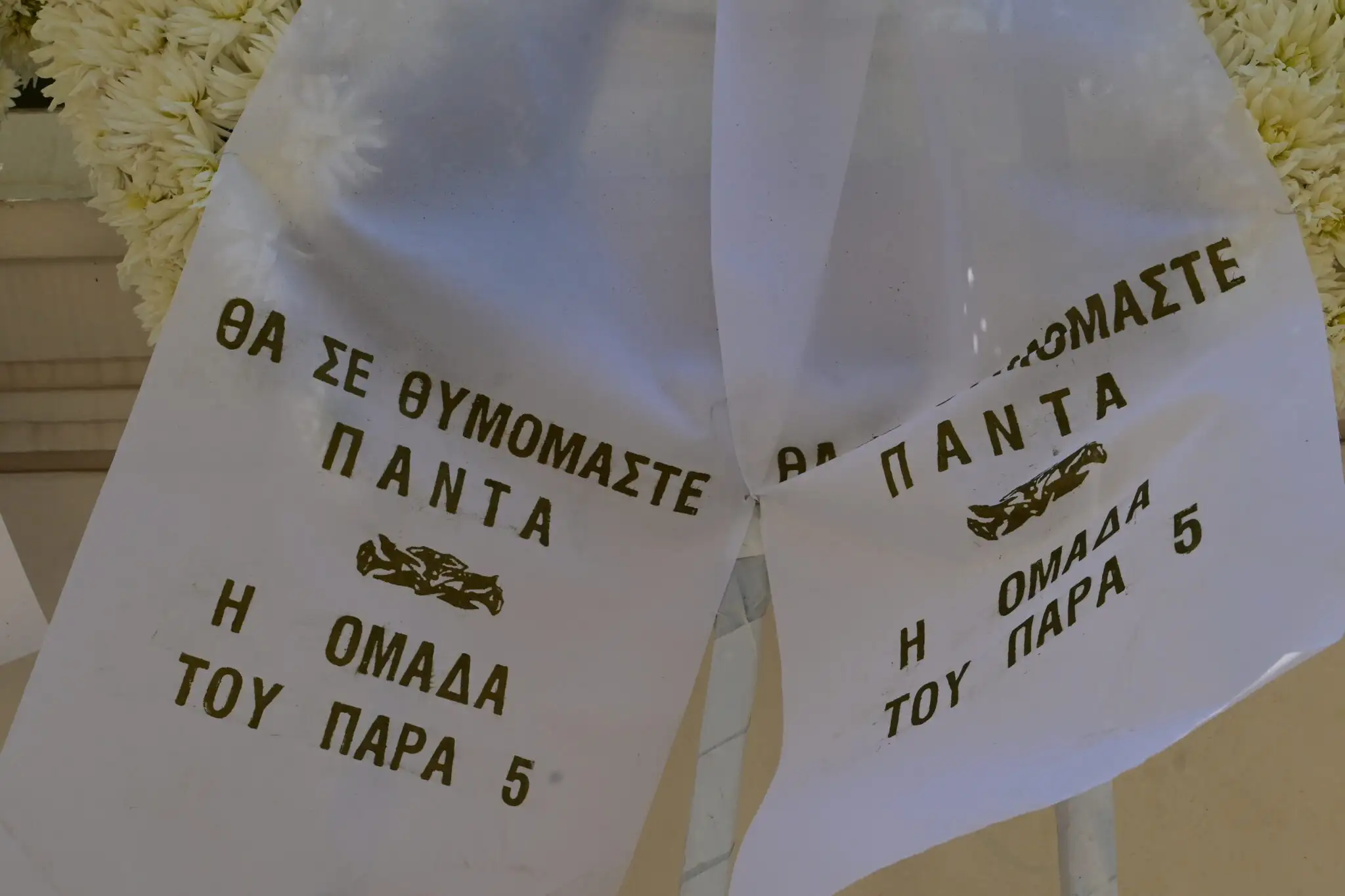 Κανείς πριν την κηδεία δεν σταμάτησε για δηλώσεις. Όλοι πέρασαν αμίλητοι στο εσωτερικό της εκκλησίας. Έξω υπήρχαν τα στεφάνια που είχαν στείλει φίλοι και συνεργάτες.