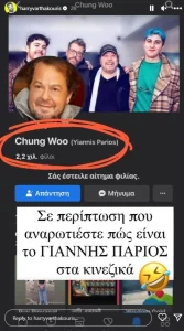 - Μάλιστα, όπως πάντα, ο Χάρης Βαρθακούρης δεν δίστασε να διακωμωδήσει την υπόθεση.«Σε περίπτωση που αναρωτιέστε πώς είναι το Γιάννης Πάριος στα κινέζικα», έγραψε με γερή δόση χιούμορ ο τραγουδιστής σχολιάζοντας το όνομα που έδωσαν οι επιτήδειοι στο ψεύτικο προφίλ του μπαμπά του.Δείτε την ανάρτησή του παρακάτω: