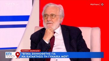 “Όταν έφυγε, έπεσα στα πατώματα. Έξι μήνες κοίταζα το ταβάνι. Δεν ήθελα να κάνω τίποτα, δεν σήκωνα τηλέφωνα. Έγερνα το κεφάλι μου το βράδυ, έλειπε και δεν μπορούσα να κοιμηθώ. Όταν συνήλθα, κατάλαβα στην πορεία ότι είμαι εδώ για να ολοκληρώσω και να υλοποιήσω την τελευταία της επιθυμία, που ήταν να γίνει αυτή η ταινία” εκμυστηρεύτηκε, φορτισμένος συναισθηματικά, ο Γιάννης Σμαραγδής στον αέρα της πρωινής εκπομπής της Φαίης Σκορδά στο MEGA.