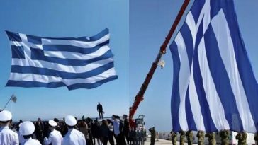 - Πρόκειται για μια σημαία, επιφάνειας 220 τετραγωνικών μέτρων, η οποία καλύπτει την πρόσοψη μιας επταώροφης πολυκατοικίας, προκαλώντας εντύπωση στους περαστικούς.
