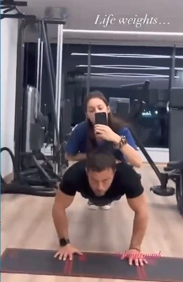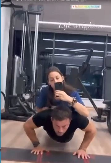 Ο Γιώργος Αγγελόπουλος κάνει γυμναστική έχοντας στην πλάτη του την εγκυμονούσα σύζυγό του, Δήμητρα Βαμβακούση.Ο Γιώργος Αγγελόπουλος όπως θα δείτε και εσείς κάνει push ups έχοντας στην πλάτη του έχει την εγκυμονούσα Δήμητρα Βαμβακούση, η οποία είναι και εκείνη ντυμένη με αθλητικά και τον τραβά βίντεο με το κινητό της.Η εγκυμονούσα κάθεται στην πλάτη του και το απολαμβάνει, ενώ ο Ντάνος σηκώνει «τα βάρη της ζωής» όπως έγραψε.