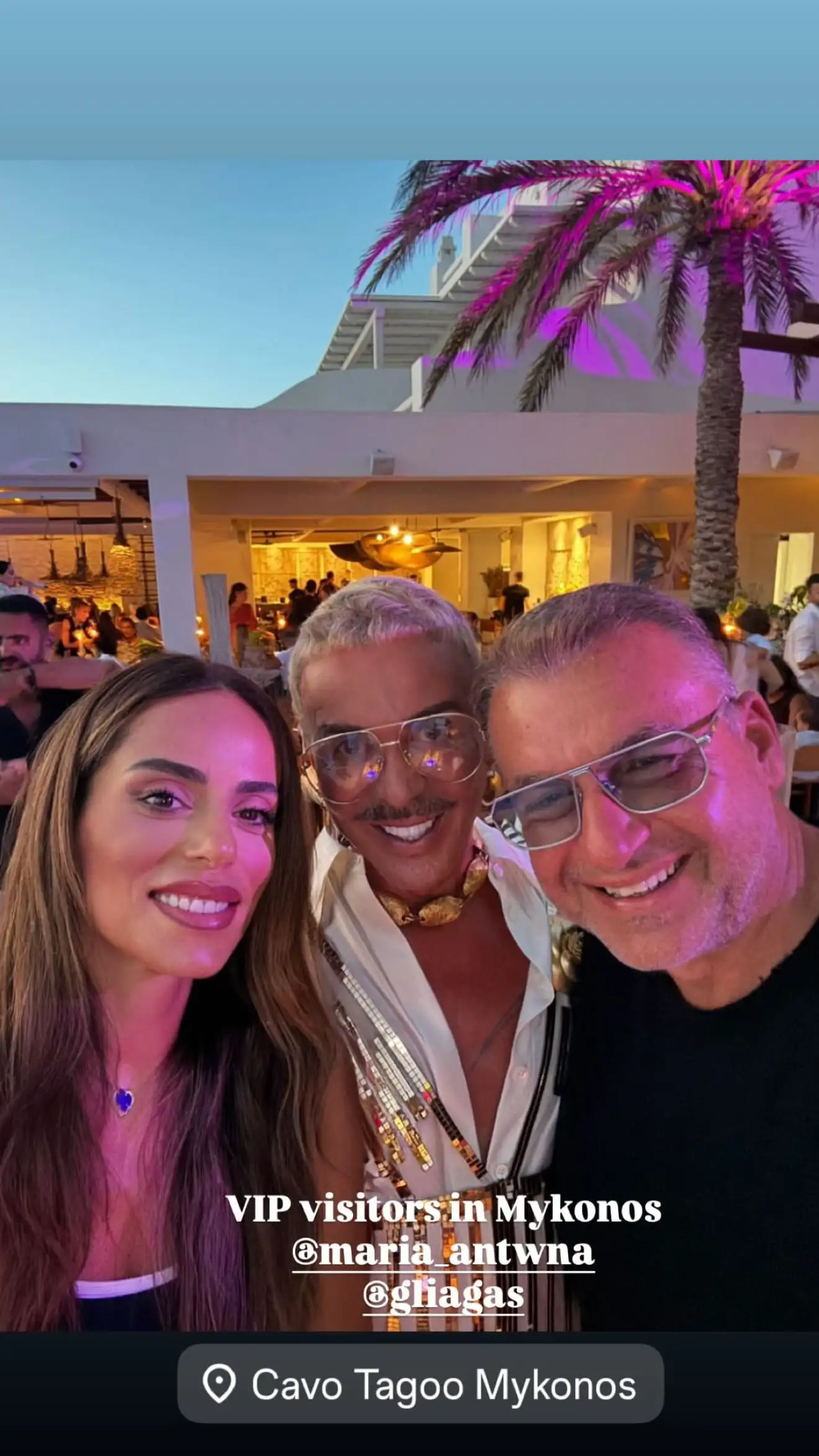 Το βράδυ του Σαββάτου, 30 Αυγούστου, το ζευγάρι απαθανατίστηκε μαζί με τον Λάκη Γαβαλά, ο οποίος μοιράστηκε τη συντροφιά τους, ενώ η Μαρία Αντωνά δε δίστασε να αναδημοσιεύσει το στιγμιότυπο στο Instagram.