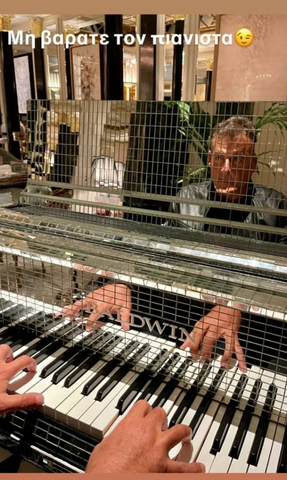 Δημοσίευσαν στιγμιότυπα από το απολαυστικό πρωινό τους στο ξενοδοχείο, ενώ ο παρουσιαστής είναι τόσο ευτυχισμένος που πόσταρε και χιουμοριστικές φωτογραφίες, όπως να παίζει πιάνο και σχολίασε: «Μη βαράτε τον πιανίστα».