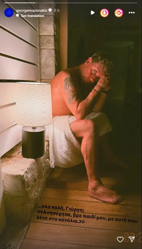 «Όλα καλά Γιώργο; Ανησύχησα βρε παιδί μου με αυτά που λένε στα κανάλια», έγραψε ο Γιώργος Μαζωνάκης στην ανάρτησή του.