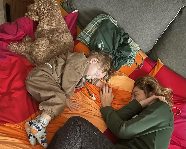 Δύο φωτογραφίες, στις οποίες απεικονίζεται να κοιμάται αγκαλιά με το γιο της, Άγγελο μοιράστηκε με τους διαδικτυακούς της φίλους η Γιούλικα Σκαφιδά.