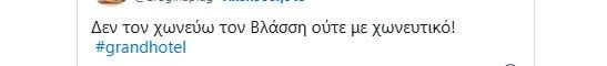 Φυσικά, μετά από αυτή τη σκηνή, το Twitter «ξέσπασε», με τους τηλεθεατές να κατακρίνουν τη συμπεριφορά του Βλάσση. Δείτε κάποια χαρακτηριστικά tweets:
