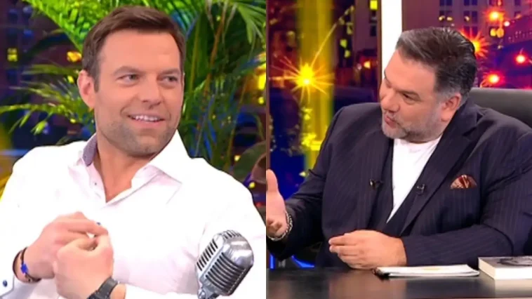 «Φαίνεστε αγχωμένος, νιώθω ότι είστε σε μία συνεχόμενη άμυνα. Εδώ τους φερόμαστε όλους με σεβασμό, δεν πάμε να βγάλουμε κάποια είδηση», σχολίασε ο Γρηγόρης Αρναούτογλου στο ξεκίνημα της κουβέντας.