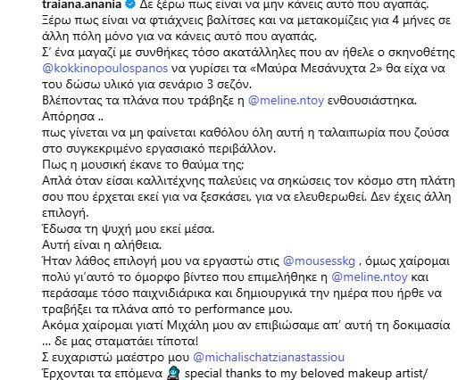Πλέον κράζει και ονομαστικά την επιχείρηση για την οποία εργάστηκε η Τραϊάνα Ανανία. Με ένα κείμενο της εξηγεί πως κρατά μεν το βίντεο που της έφτιαξαν απο μια συνεργασία ωστόσο που ήταν λάθος!