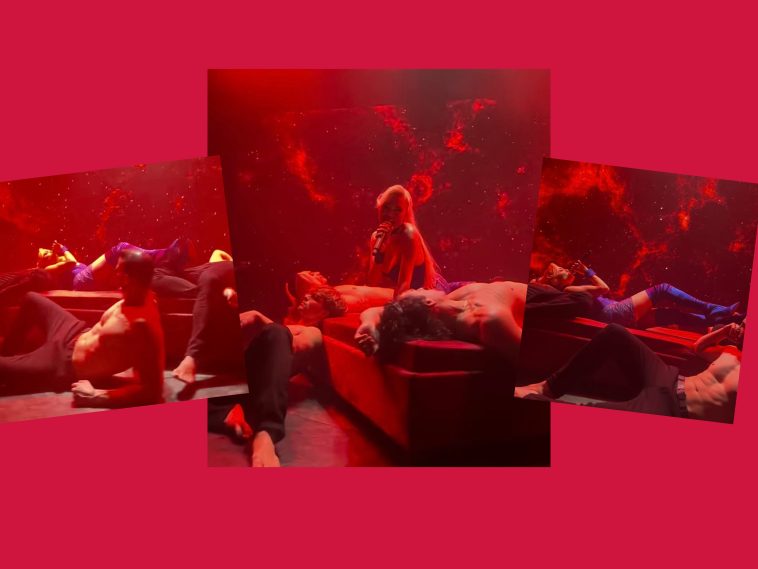 - Μια τραγουδάει αλλά δεν νομίζω οι θεατές να…δίνουν σημασία στη φωνή της, μια βγαίνει από ποτήρι σαμπάνιας, όπως σας έδειξα στο παρελθόν, πλέον συμμετέχει και σε… χορευτικά με ημίγυμνους άνδρες!