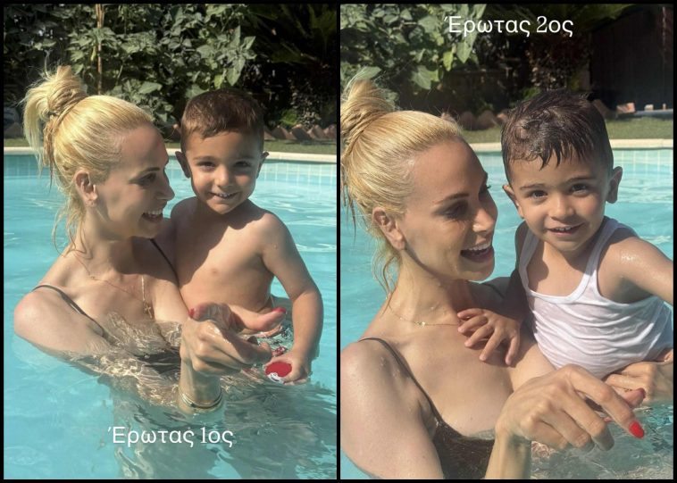 Δείτε το πρώην μοντέλο στην πισίνα με τα αγόρια της. Τον Σωτήρη και τον Νικόλα να λάμπουν στην αγκαλιά της. Ευτυχία