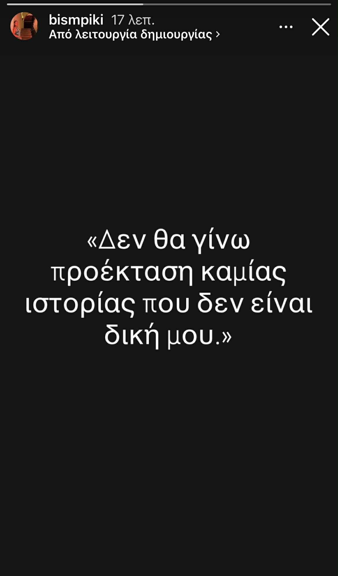 Συγκεκριμένα γράφει «Δεν θα γίνω προέκταση καμιά ιστορίας που δεν είναι δική μου».