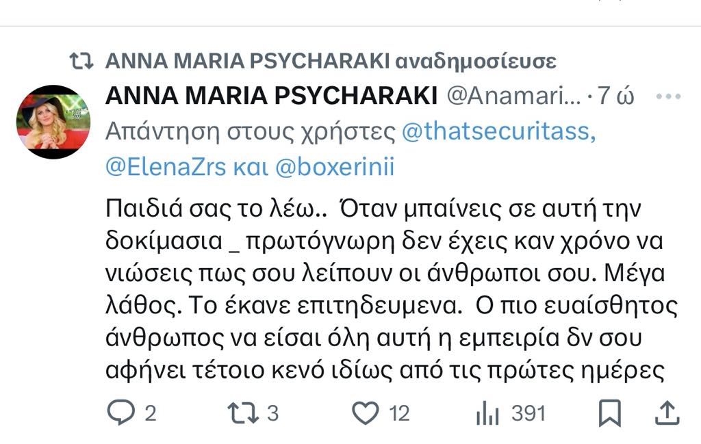 Φωτιά έχουνε πάρει τα δαχτυλάκια της στο Twitter. Κάθε λίγο και λιγάκι η Άννα Μαρία Ψυχαράκησχολιάζει όσα βλέπει προκαλώντας τους χρήστες να απαντήσουν.