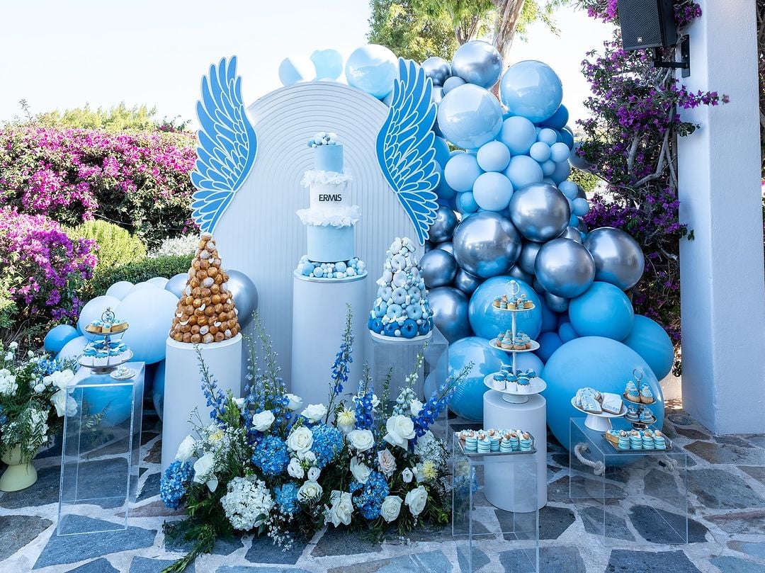 - Η Ελένη Φουρέιρα αποφάσισε σήμερα, Σάββατο 15/06, να μοιραστεί με τους διαδικτυακούς της φίλους μερικές φωτογραφίες από την ξεχωριστή για την οικογένειά της ημέρα. Η δημοφιλής τραγουδίστρια φωτογραφήθηκε χαμογελαστή στο πλευρό του συζύγου της, κρατώντας αγκαλιά τον γιο τους, ενώ στα στιγμιότυπα που ανήρτησε καταγράφεται, μεταξύ άλλων, και ο εντυπωσιακός στολισμός του χώρου όπου έγινε το πάρτι, με το μπλε χρώμα να κυριαρχεί. Ο στολισμός περιλάμβανε πολλά μπαλόνια, αλλά και λουλούδια, ενώ σε περίοπτη θέση δέσποζε και μία μεγάλη επιγραφή με το όνομα του νεοφώτιστου. «Ερμής! Μια από τις ωραιότερες μέρες της ζωής μας! Ευχαριστώ πολύ όλους αυτούς τους ανθρώπους που μας την έκαναν τόσο μαγική», έγραψε η Ελένη Φουρέιρα στη λεζάντα της ανάρτησής της, με τους διαδικτυακούς της φίλους να της χαρίζουν δεκάδες χιλιάδες likes και να της στέλνουν τις ευχές τους για τον γιο της.