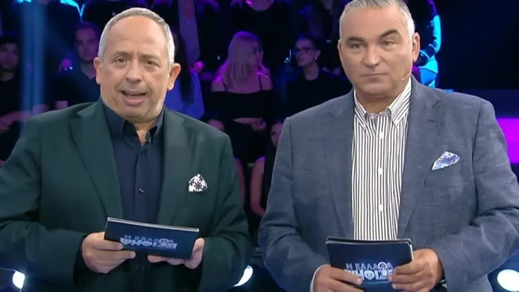 Ο Χρήστος Κούτρας και ο Γιάννης Ντσούνος έκαναν πρεμιέρα live με το διαδραστικό τηλεπαιχνίδι «Η Ελλάδα ψηφίζει». Οι δύο δημοσιογράφοι εμφανώς ενθουσιασμένοι για την έναρξη της δεύτερης σεζόν αναρωτήθηκαν με το ιδιόρρυθμο χιούμορ τους.
