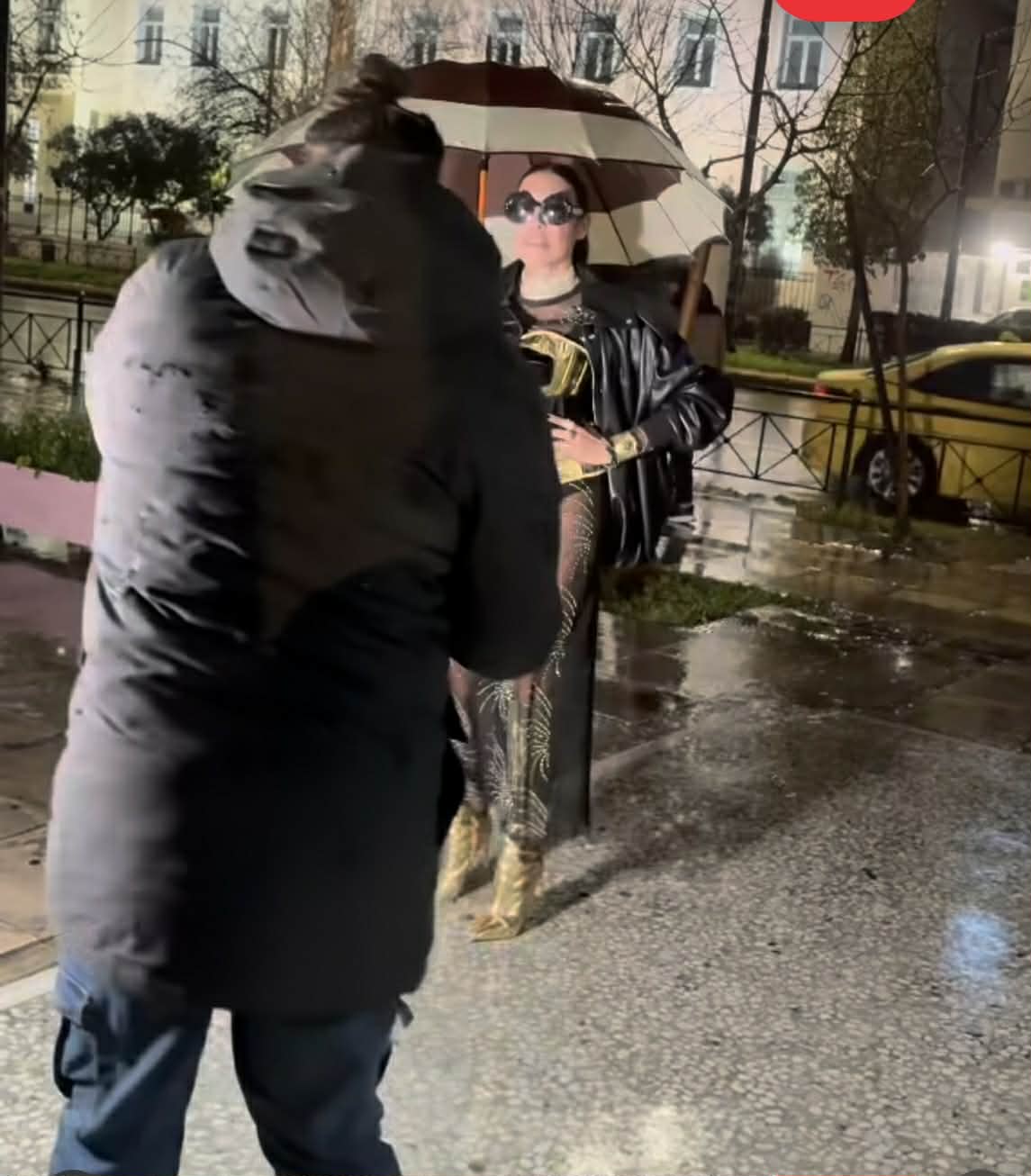 Η 60άρα μελαχρινή τρέλανε τους οδηγούς στο κέντρο της Αθήνας. Όλα συνέβησαν, στην οδό Πανεπιστημίου, όπου και ποζάρει στον φακό φορώντας διαφάνεια, με την βροχή να δυσκολεύει την φωτογράφιση.
