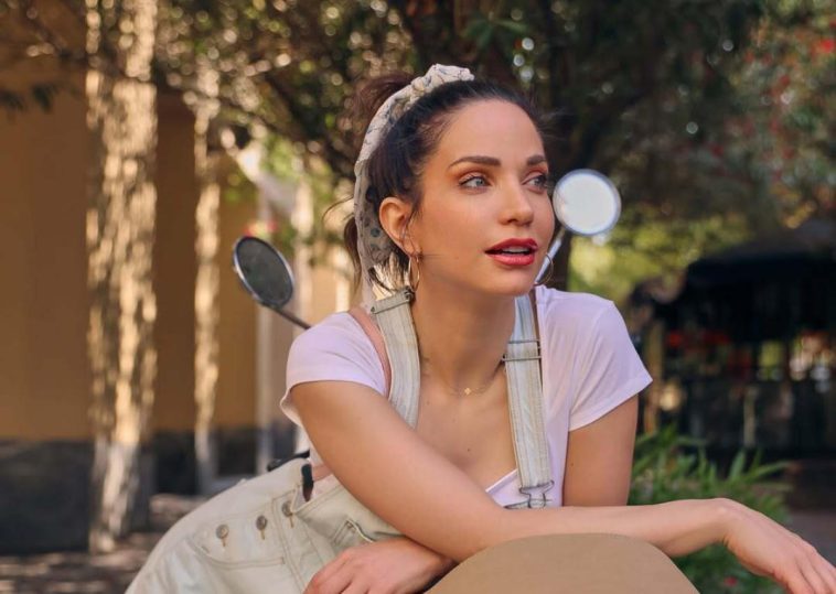 - Η ηθοποιός απεικονίζεται να χορεύει πάνω σε ένα γιοτ με φόντο το γαλάζιο της θάλασσας, ενώ προσπαθεί να στεγνώσει τα μαλλιά της.