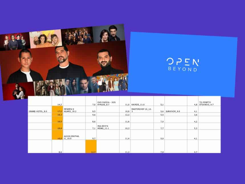 - Απέναντι σε πανάκριβες παραγωγές σίριαλς και ριάλιτι το Open επέλεξε να βάλει ταινίες. Να δώσει στο κοινό μια επιλογή διαφορετική απο τις δεδομένες. Και η άνοδος ήρθε νωρίς. Το 5% στο Prime ειναι πολύ μεγάλη απόδοση για το κανάλι της Παιανίας και δίνει στον οργανισμό προοπτική και το κυριότερο; Αποτύπωμα στην διαφημιστική αγορά.