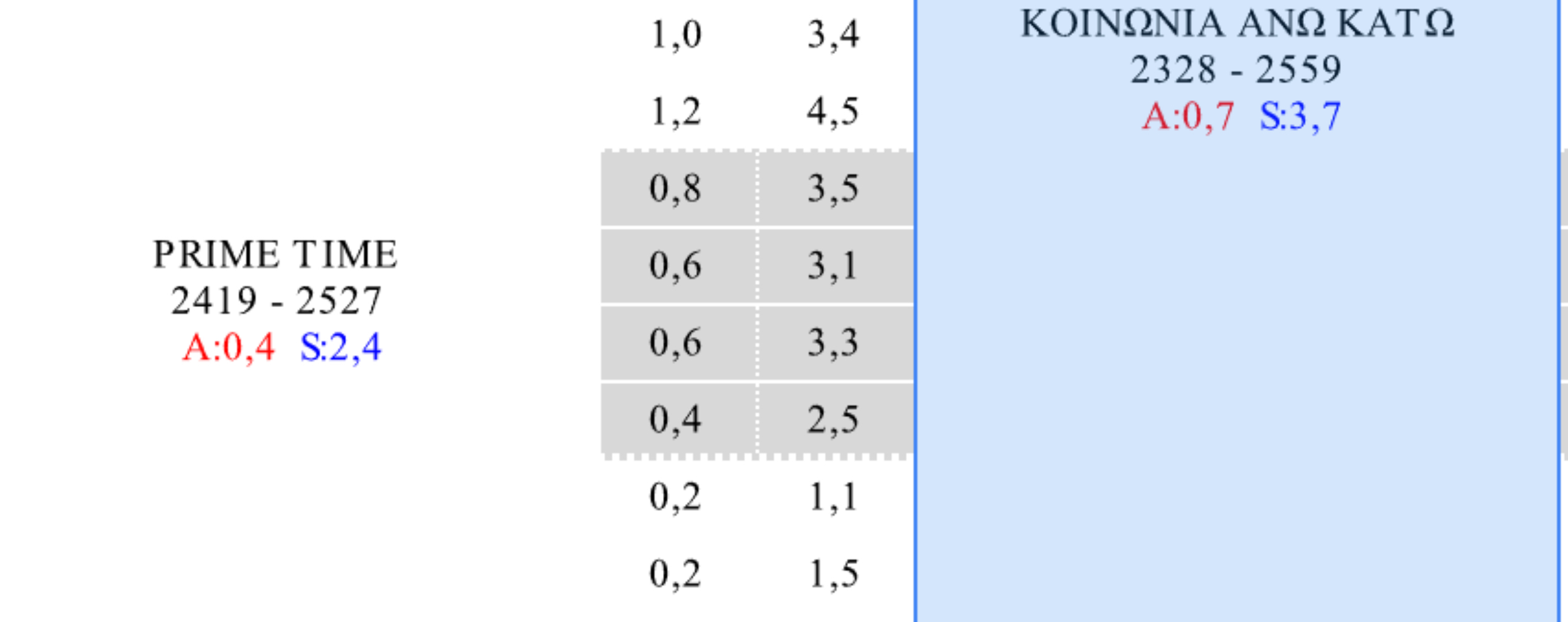 - Απο την άλλη μια ακόμη “μαγική” επιλογή του Ζούλα το “Prime Time” έπιασε πάτο με 2άρια… όπως πάτο έπιασε και η παραγωγή του Open που παρότι είχε ενδιαφέροντα θέματα δεν κατάφεραν να τα διαχειριστούν σωστά. Δεν έχουν αρχή μέση και τέλος. Μια διαρκής οχλοβοή… που ταιριάζει μόνο στον Σταύρο και κάνει τον Ντούγκα να βγάζει δικαιολογημένα “σπυριά”. Βλέπετε δεν κάνουν όλοι για όλα.