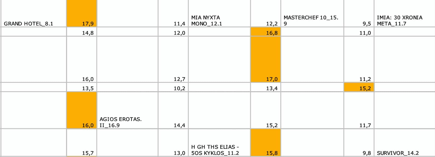 Γεγονός είναι πώς παρά την μεγάλη πάσα το Survivor ήρθε τρίτο με τον Άγιο Έρωτα και το “Master Chef” να κόβουν το νήμα… στις πρώτες θέσεις. Δείτε τα νούμερα αναλυτικά παρακάτω: