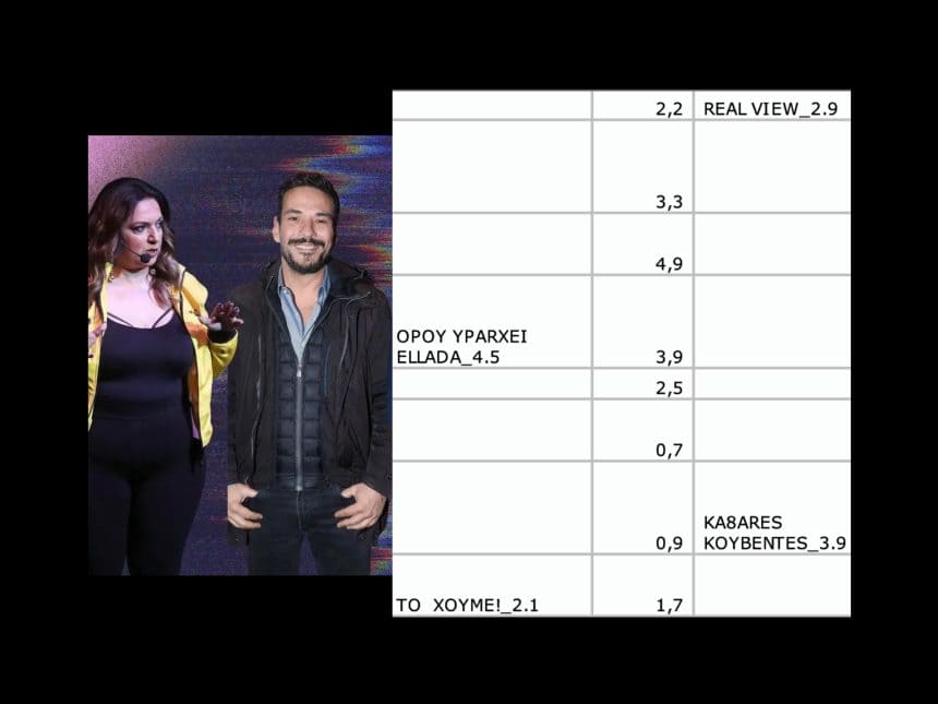 Το χειρότερο για την Τρυφίδου και τον Κωστάκη είναι πώς η απόλυτη φετινή αποτυχία το “Real View” καταφέρνει και του ρίχνει στ΄αυτιά στη μάχη του τηλεοπτικού βυθού. Όχι πώς μοιάζεται κανείς για τους 60.000 τηλεθεατές της ζώνης… αλλά βρε αδερφέ… έχει κι αυτό την αξία του. Δείτε τα νούμερα αναλυτικά παρακάτω: