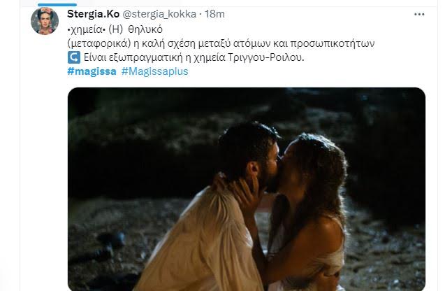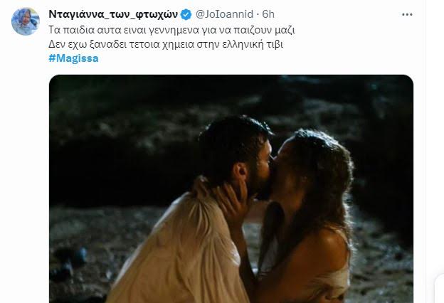 Ήταν ζευγάρι τις «Άγριες Μέλισσες» και ο Χαρίτος ξέρει καλά τι κάνει! Στη «Μάγισσα» ο Αναστάσιος Ροιλός και η Έλλη Τρίγγου θα έχουν έντονες ερωτικές σκηνές. Οι πρώτες εικόνες κυκλοφόρησαν με τους τηλεθεατές να διακρίνουν την απίστευτη χημεία τους και να τους αποθεώνουν στο τουίτερ «Βάλτε τους σε ένα μουσείο κάντε κατι τέλος πάντων» «Είναι εξωπραγματική η χημεία Τριγγου-Ροιλου» «Τα παιδιά αυτα είναι γεννημένα για να παίζουν μαζι Δεν εχω ξαναδει τετοια χημεια στην ελληνική τιβι» «Μη διαχείριση η χημεία τους» είναι μερικα από τα σχόλια τους.