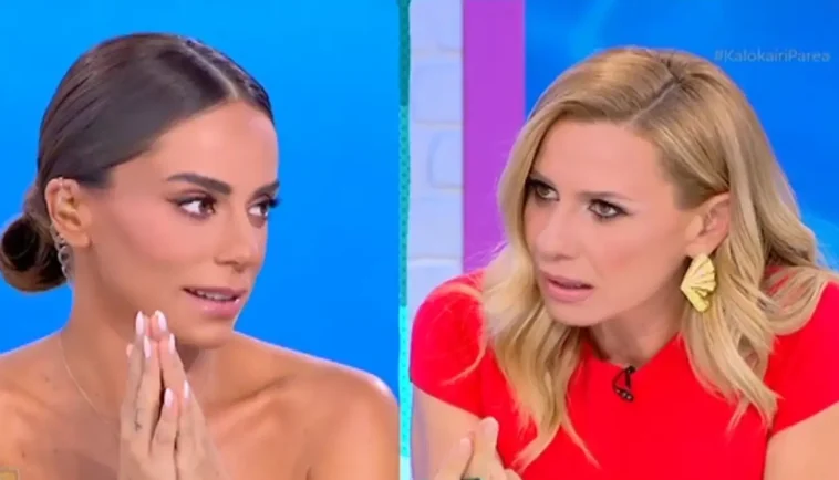 «Μου είχαν τοποθετήσει μέσα στο σπίτι μου ένα πολύπριζο και χωρίς να το ξέρω εγώ, είχε μικρόφωνο και με άκουγαν», είπε αρχικά η Μαρία Αντωνά με την Κατερίνα Καραβάτου να απαντά έκπληκτη: «Το λες αλήθεια; Σου είχαν βάλει κοριό στο σπίτι; Και πώς το ανακάλυψες;».