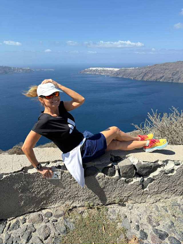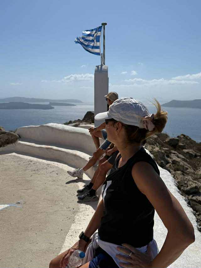 Φορώντας σορτσάκι, Tshirt και τα αγαπημένα της sneakers, η ίδια έκανε πεζοπορία στα πιο γραφικά σημεία της Σαντορίνης και αναζωογονήθηκε με θέα τη μαγευτική Καλντέρα.