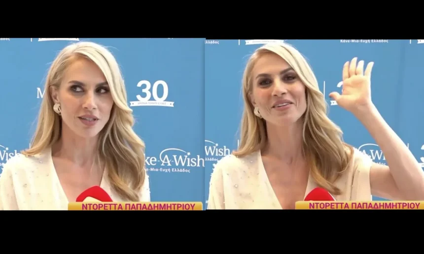 Στην επετειακή δράση του Make-A-Wish Greece βρέθηκε η Ντορέττα Παπαδημητρίου, όπου μίλησε στις τηλεοπτικές κάμερες, αλλά όχι για πολύ. Η παρουσία της προκάλεσε ενδιαφέρον, όμως η συζήτηση πήρε γρήγορα διαφορετική τροπή όταν οι ερωτήσεις στράφηκαν στην προσωπική της ζωή.