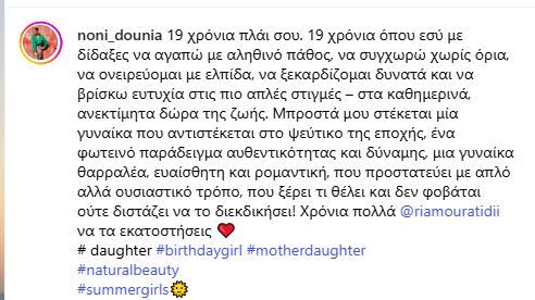 - Η Νόνη Δούνια επέλεξε αυτή την υπέροχη εικόνα για να ευχηθεί στην κόρη της που έγινε 19 ετών και γράφει
