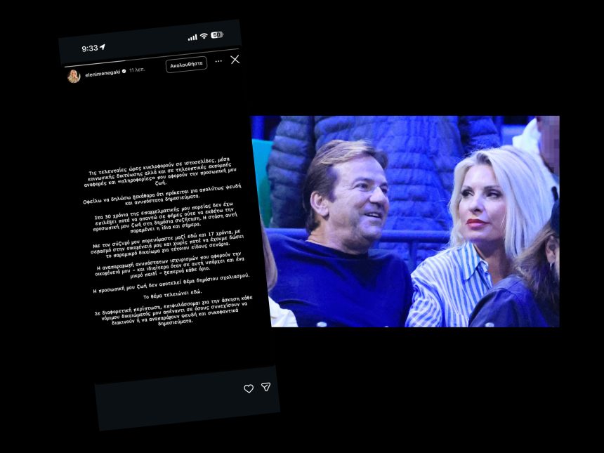 «Τις τελευταίες ώρες κυκλοφορούν σε ιστοσελίδες, μέσα κοινωνικής δικτύωσης αλλά και σε τηλεοπτικές εκπομπές αναφορές και «πληροφορίες» που αφορούν την προσωπική μου ζωή. Οφείλω να δηλώσω ξεκάθαρα ότι πρόκειται για απολύτως ψευδή και ανυπόστατα δημοσιεύματα”.