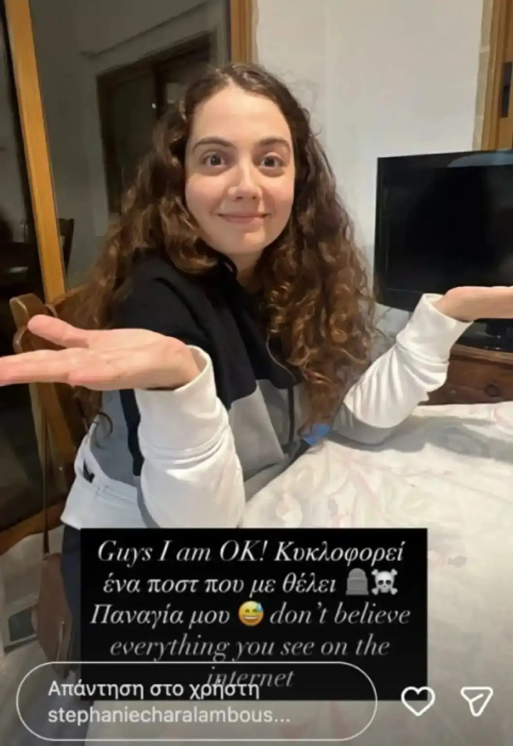 “Δεν μπορώ να πιστέψω αυτό που διάβασα. Παιδιά, είμαι καλά. Κυκλοφορεί ένα ποστ που με θέλει νεκρή”.