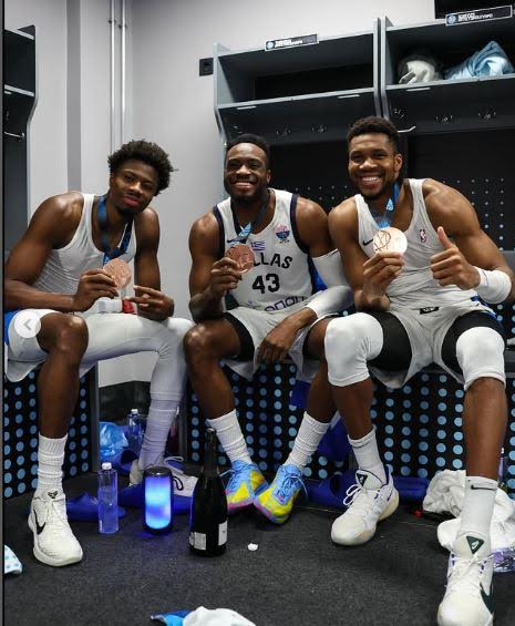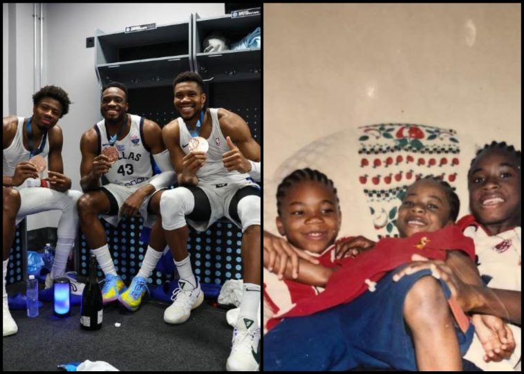 - «Τρία αδέρφια από τα Σεπόλια»έγραψε στο Instagram ο Κώστας Αντετοκούνμπο, συνοδεύοντας τη συγκεκριμένη λεζάντα με δύο φωτογραφίες. Μια από το παρελθόν με τρία αδέρφια στο σαλόνι – παιδικό δωμάτιο και μια τωρινή με τα μετάλλια στα χέρια!