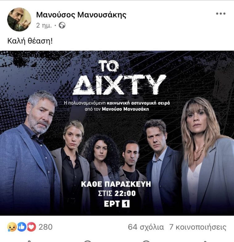 Έβαλε μια φωτογραφία με τη νέα του σειρά που ήδη προβάλλεται κάθε Παρασκευή στην ΕΡΤ, και έγραψε «καλή θέαση»