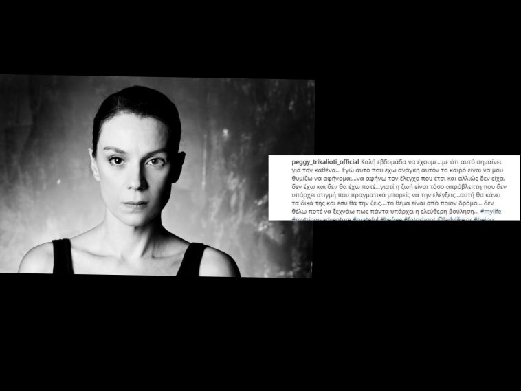 Με μια συμβουλή προς όλους αλλά και προς τον εαυτό της καλωσόρισε τη νέα εβδομάδα η Πέγκυ Τρικαλιώτη. Η ηθοποιός μοιράζεται τις σκέψεις της με τους ακολούθους της γράφοντας πως αυτή τη περίοδο έχει την ανάγκη να αφεθεί.