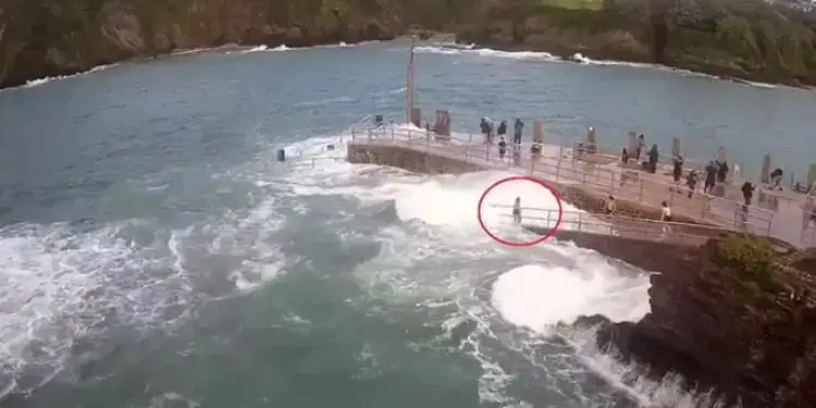 - Τη στιγμή που ένα πελώριο κύμα παρασύρει ένα κορίτσι που στέκεται σε προβλήτα και το ρίχνει στη θάλασσα, καταγράφει βίντεο που δημοσιεύουν βρετανικά ΜΜΕ.